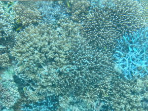 白波が立つ手前で停泊してさんご礁をみせてもらいました。 いろいろなお魚がいて、船のお兄さんが名前の説明もしてくれました。