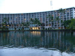 We returned Hilo by way of shopping mall in Hilo and bought food and fruits. We passed through tranquil Hilo bay. I realized that the Hilo Hawaiian Hotel is best location. We ate dinner at the hotel restaurant. It cost 25 dollars per person all including food, alcohol, fruits, tax and tips. It was very reasonable. We took a walk around Hilo bay near the hotel and took pictures.