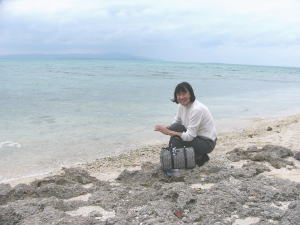 さてさて星の砂探し、、、なかなか見つかりませんね、、、、 不完全ながらも二つ見つけて満足♪