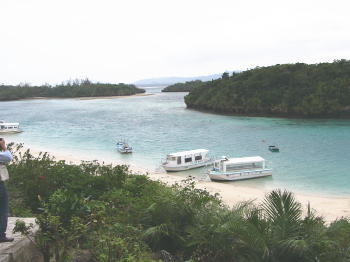 まずは、トシが大学生のころに訪れて感激したという川平湾へ。 昔とはすっかり変わっていて、グラスボート屋さんが立ち並んでいる。