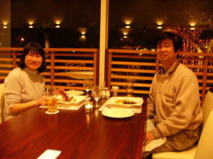 I made a reservation of dinner and then we had dinner at one of the restaurants. We felt very long day, but it was settled. We were talking with drinking Okinawa shochu Awamri with eating dry fruits in a veranda. It was very comfortable outside.