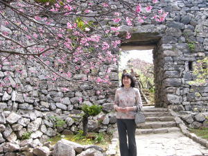 There was a very beautiful beach and this place was newly developed sight seeing place. There were many buses and cars parked near the bridge. It was easy to access to the beach. The temperature was about 25 degree and I had sun tanned. It was very hot and walking along the beach. After that, we went to the Nakijin castle.