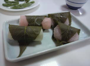 境内に入ると戸をあけて下さって、どうぞどうぞと招き入れて下さり、立礼のお席が設けられており、早速桜餅とお抹茶のお接待が♪