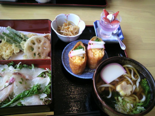 お花見御膳です。 天婦羅がさくっとして美味しかったです。