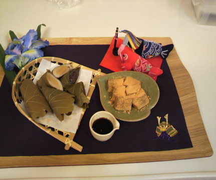 和菓子の教室で、かしわ餅二種類と わらび餅を作りました。