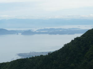 After breakfast, we left the hotel for a good view point of Mt.Fugen and 360 degree view. We took a bus service to the foot of mountain and then took a cable car to reach a view point. Then we walked up for ten minutes. As it was a fine day, we could have a very beautiful scenery. We could see Mt.Fugen and Onzen town and many islands in the sea. From the top of the hill, we could find a lake and decided to walk there. After returning to the town, we began to walk around the lake. Though it took about one hour, there was nobody walking in the trail. It was hot.