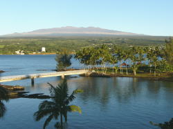The weather was fine and I could see Mt. Mauna Kea clearly from my room. Mt. Mauna Kea is 4205m high and there are three white buildings at the top of the mountain I could see. My wife and I went to the swimming pool of the hotel and swam there for one and half hours. There were several people in the poolside.