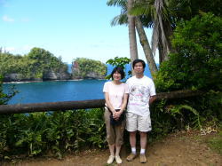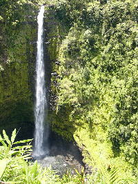 The Rainbow Falls height is about 15m, but a lot of water falls from the cliff. The guidebook describes that we can sometimes see the rainbow in the morning, but unfortunately we missed it. After visiting the Rainbow Falls, we visited the Akaka Falls which is located 30miles north of Hilo town. About 10 minutes walk from the parking lot reached the Akaka Falls which has 150m height. The scenic spot is far from the Falls, but we could see the whole Falls in the forest. The trail gives us another falls and it took about 25 minutes walk totally. I felt very comfortable walking in the forest.
